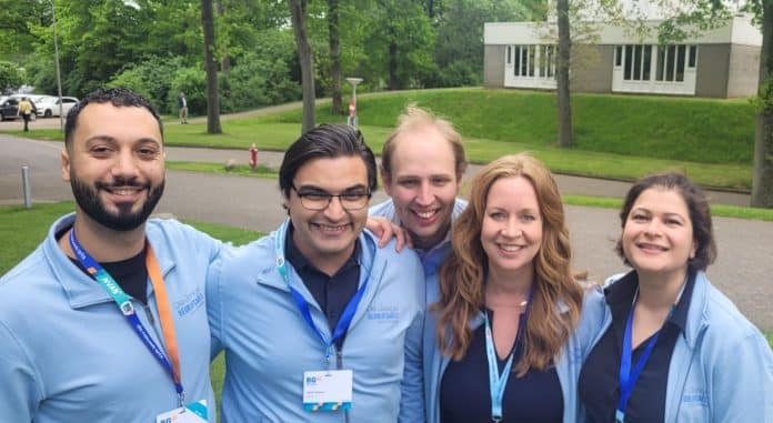 Het bestuur van De Jonge Bedrijfsarts met v.l.n.r. Julien Rezek, Zamir Zewari, Friso Muntinghe, Veronique van Zelm en Mona Afra.